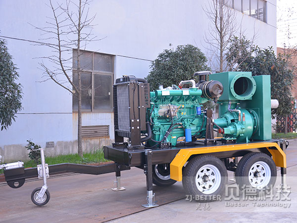 湖北荊州應急局驗收貝德科技半架式四輪移動排澇泵車